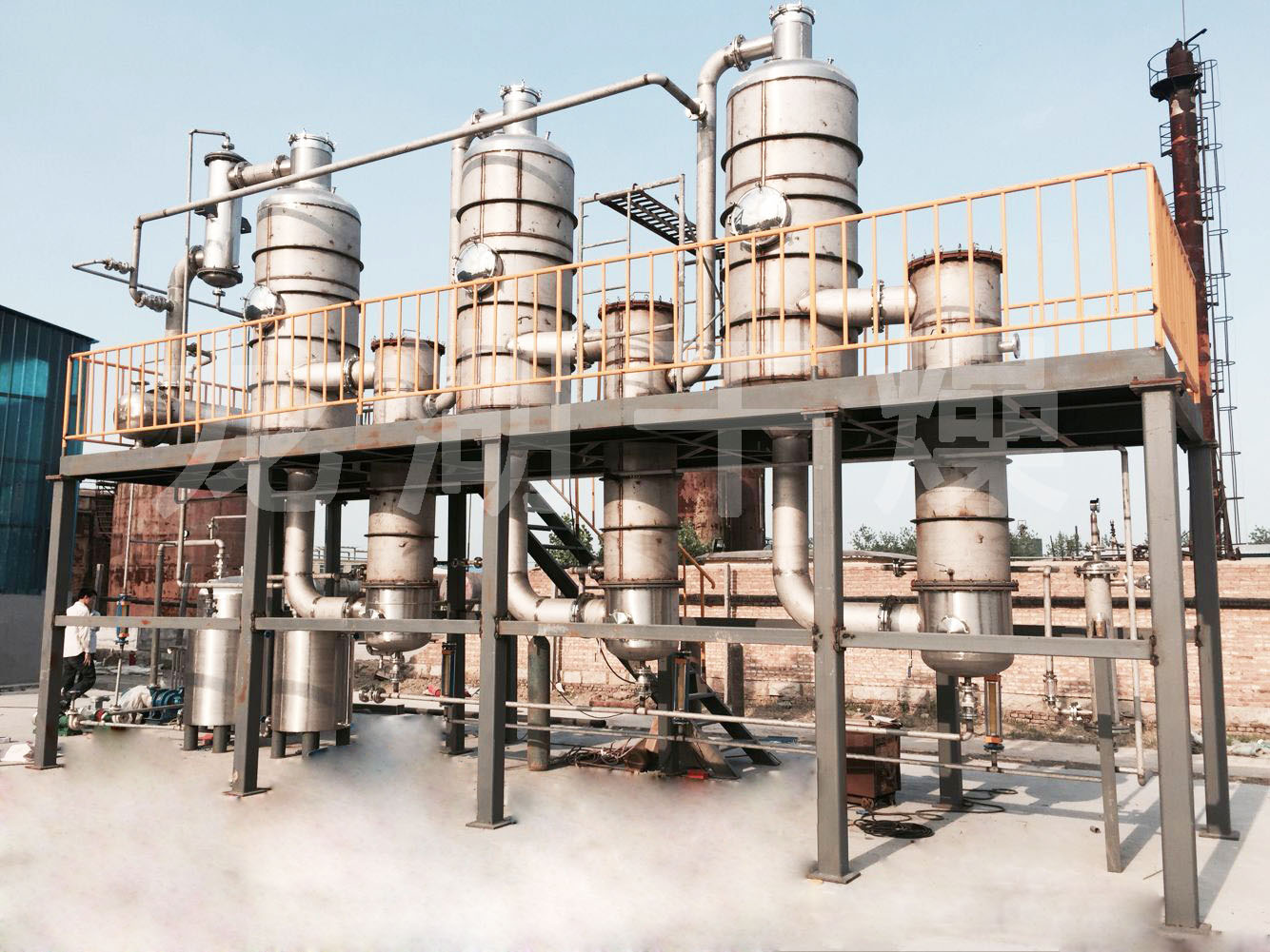 單效或多效降膜蒸發器,適用于牛奶、葡萄糖、淀粉、木糖、制藥、化工、生物工程、環保工程、廢液回收等行業進行低溫連續式蒸發濃縮,具有傳熱效率高,物料受熱時間短等主要特點,所以特別適用于熱敏性、粘滯性、發泡性等物料。